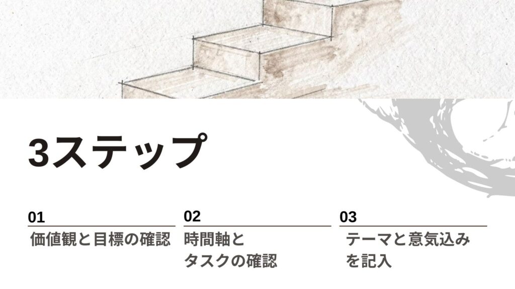 これからご紹介する「価値観ベースデイリープラン」は、はじめての方でも安心して取り組める3ステップで進めます。「難しそう…」と感じている方こそ、ぜひ一緒にチャレンジしてみましょう。あなたの毎日が、少しずつ理想に近づきますように。