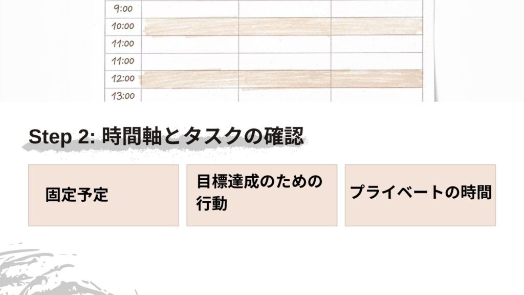 Step 2:今日の時間軸とタスクの確認(1分)