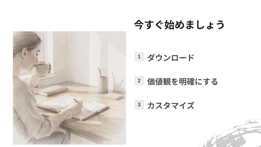 - 無料リフィルをダウンロード:まずは価値観診断から始めましょう