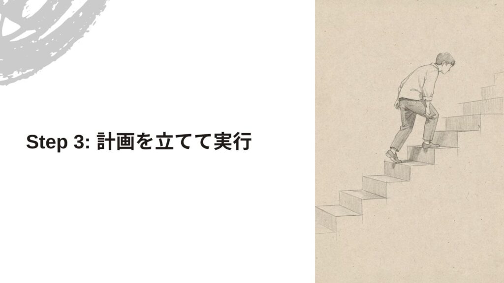 価値観と役割が明確になったら、具体的な計画を立てて実行していきます。