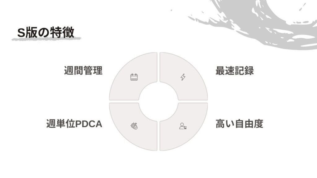 S版を最大限活かすには、「週単位の流れの意識」と「自分なりの記録フォーマット工夫」がポイントです。