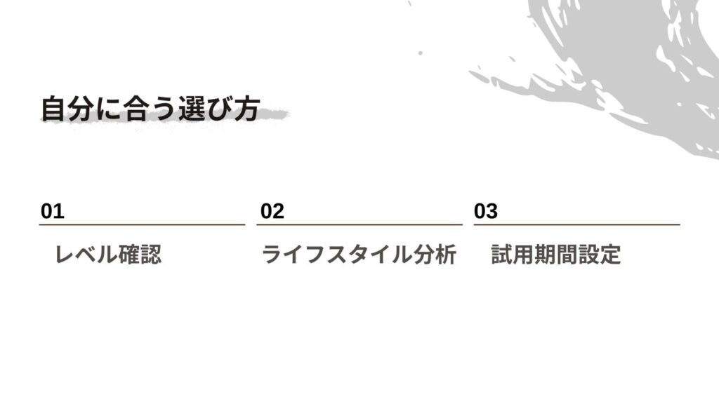 この試し期間で、「自分にはこのタイプが合っているな」と感じればそのまま続ければOKですし、「ちょっと合わないな」と思ったら、別のタイプに切り替えても大丈夫です。