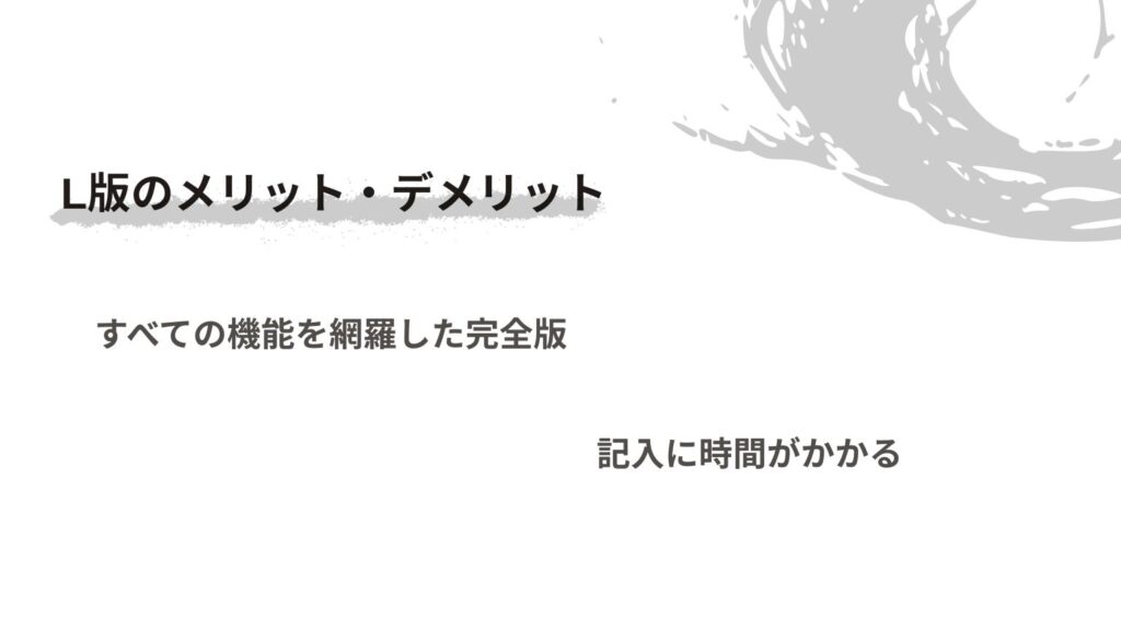 - 記録できる情報がL版より少ないため、より詳細な振り返りや自己分析はしにくい