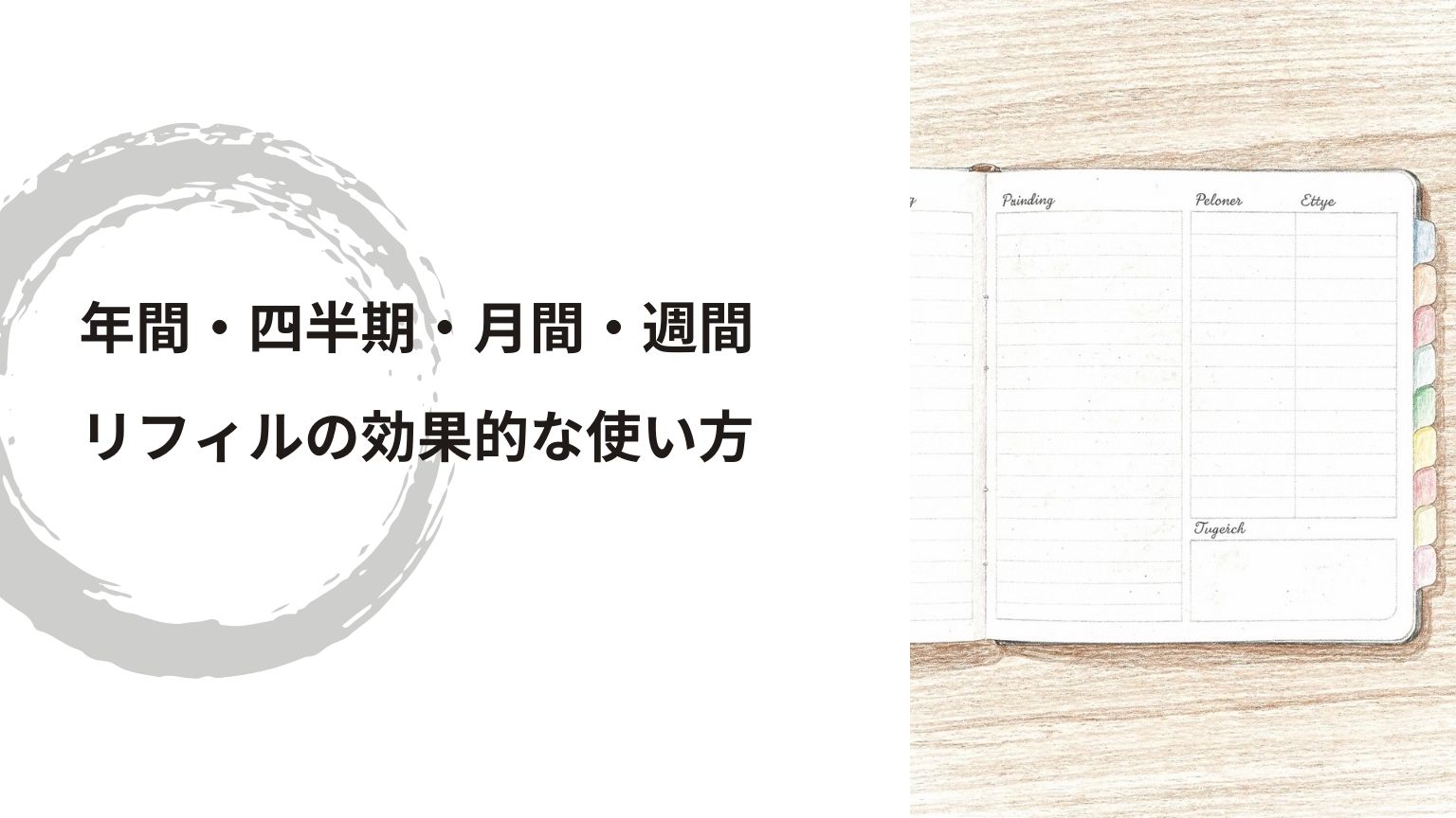 - 上位(年間→四半期→月間→週間)のリフィルを必ず見返してから下位のリフィルを作成しましょう。これにより、「自分はどこに向かっているのか?」を見失いません。