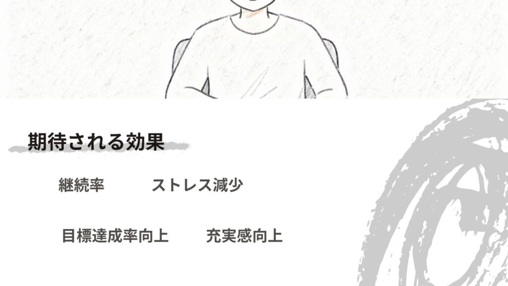 - ✅ 継続率の向上:動機が明確なため、3ヶ月以上継続できる人が80%以上