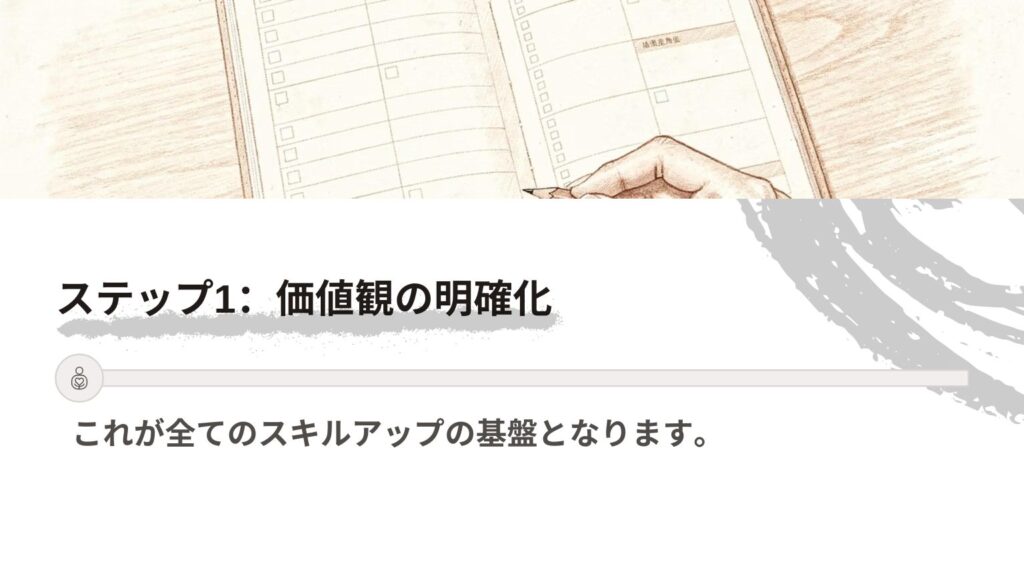 まず、自分の価値観を明確にしましょう。これが全てのスキルアップの基盤となります。