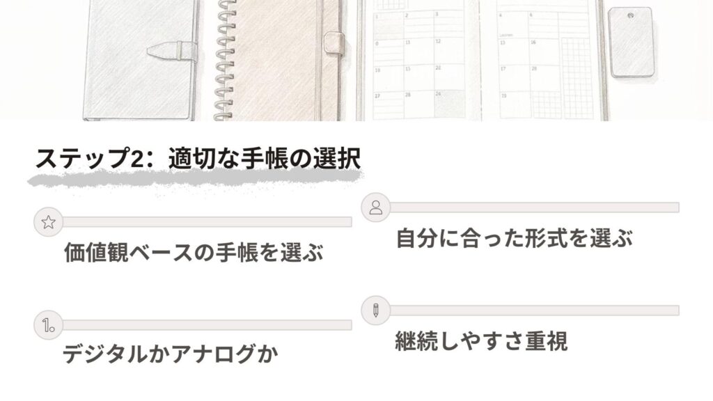 ステップ2:適切な手帳の選択