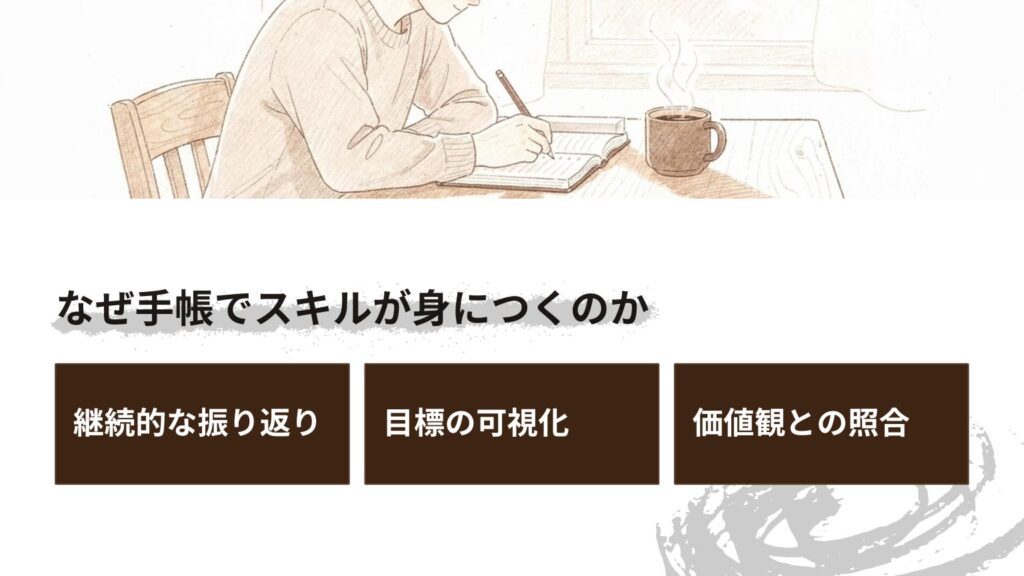 手帳を使うことでスキルが身につく理由は3つあります: