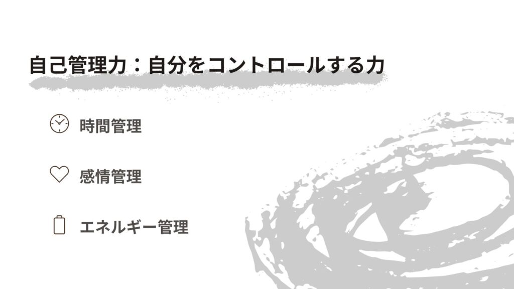- 自己管理力:自分をコントロールする力