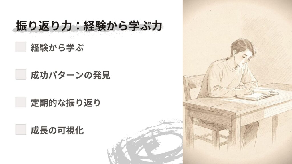 - 振り返り力:経験から学ぶ力
