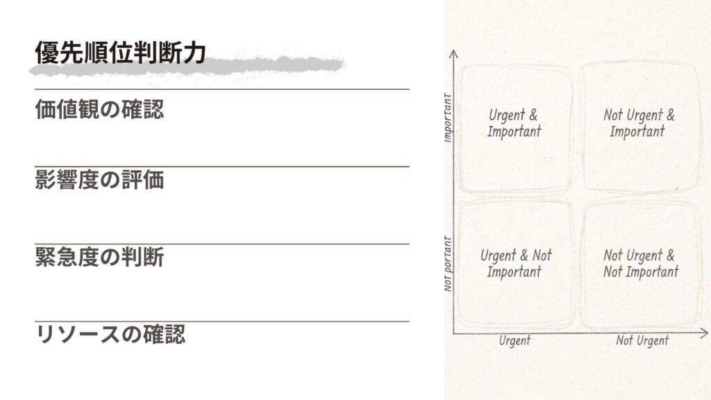 - 優先順位判断力:重要度を見極める力